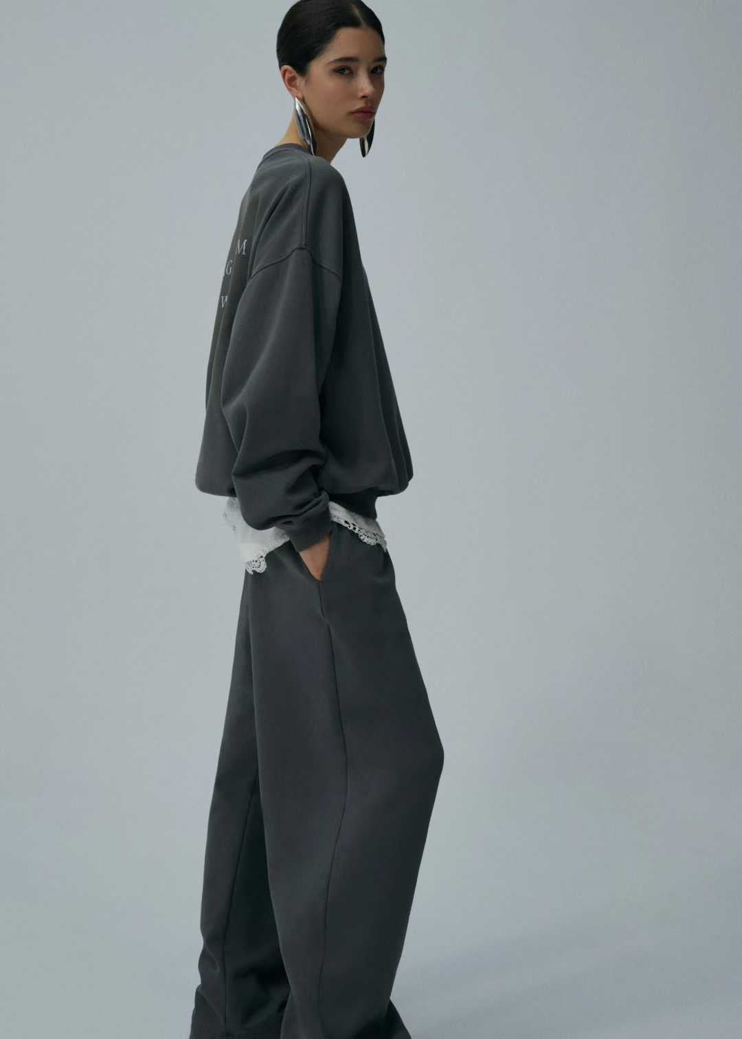 ヴィンテージライクな風合いが魅力の、グレーカラーのオーバーサイズスウェット。