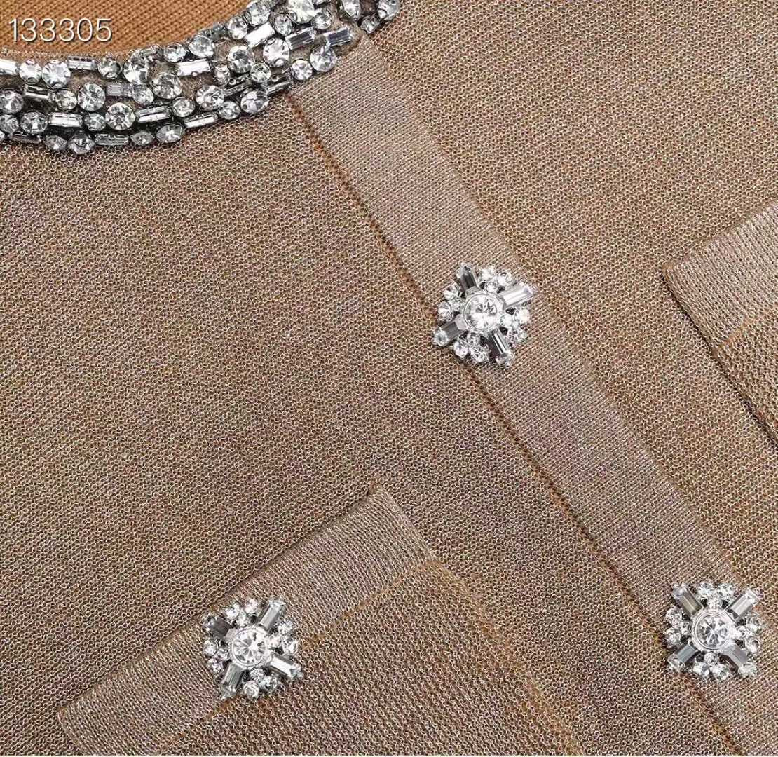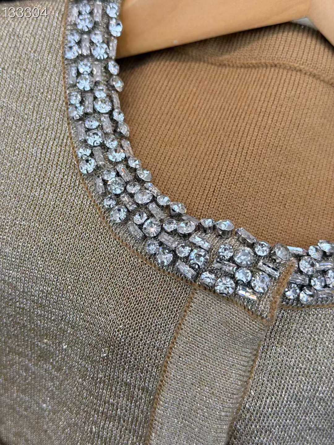 煌めくゴールドラメと首元にあしらわれたジュエルディテールが、