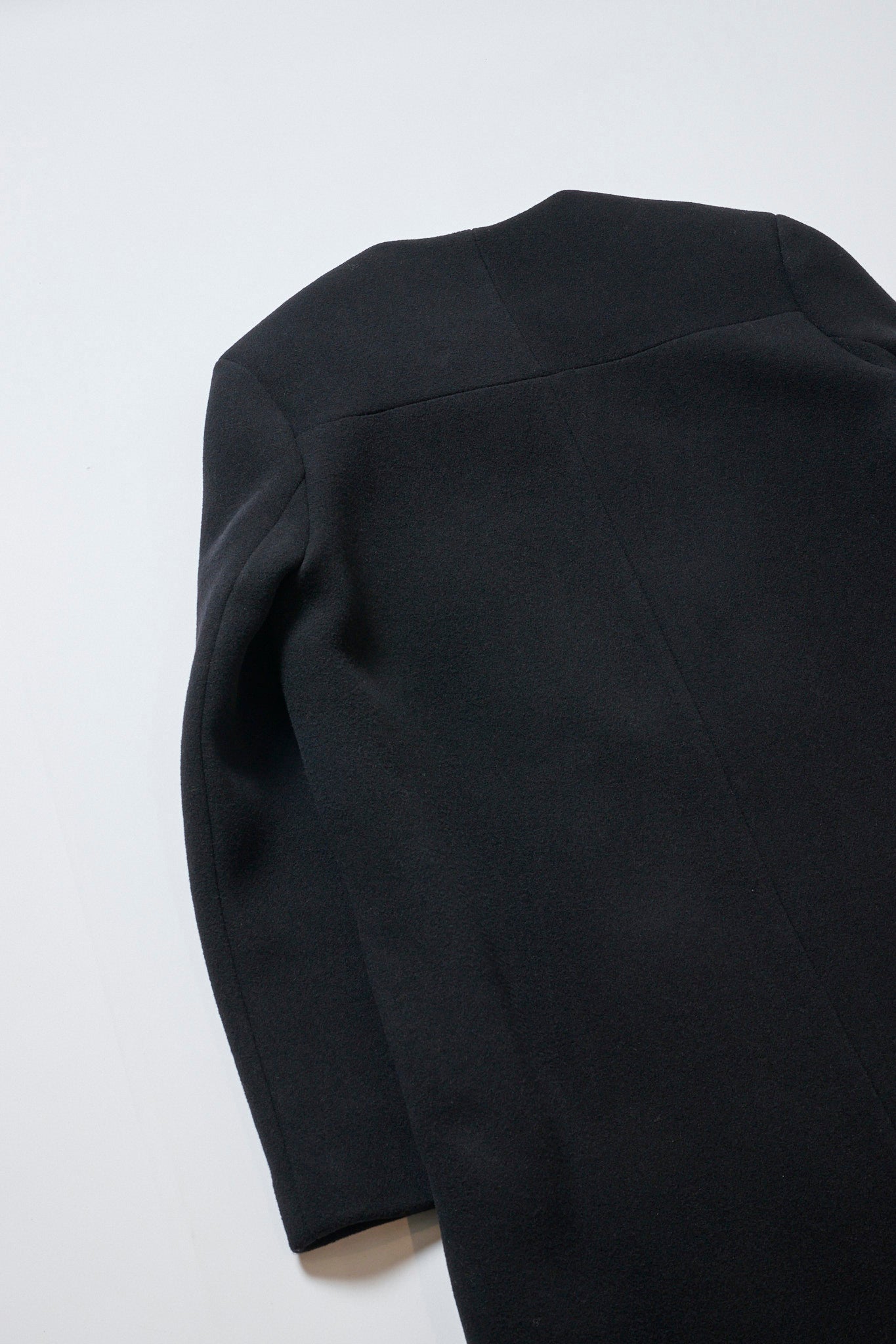 - ラシックで洗練されたミニマルデザインのブラックコート